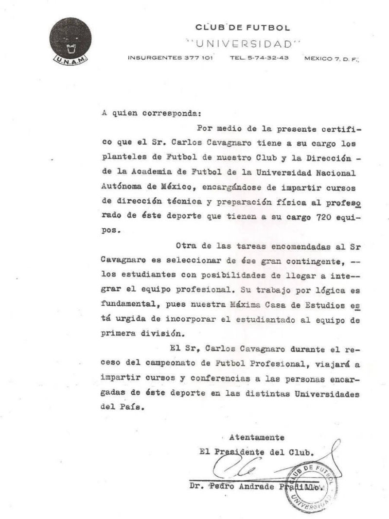 5. Carta de la Federación Nacional de Fútbol de Panamá certificando el dictado por parte de Carlos Cavagnaro de un Curso para Entrenadores de Fútbol así como un ciclo de clínicas auspiciadas por el Instituto Nacional de Deportes, el Comité Olímpico de Panamá y la Federación Nacional de Fútbol de Panamá, donde ha sido designado en función de su desempeño profesional y humano como presidente vitalicio de la federación de ese país.